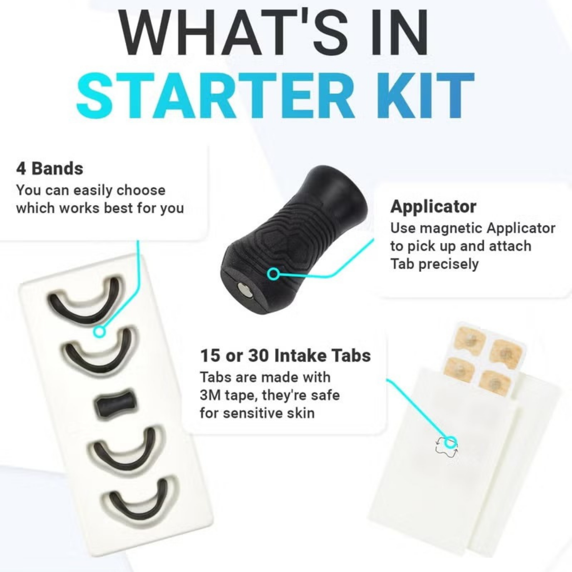 • EASY TO USE - The snoring aid Starter Kits come with all the essentials to start using Intake Breathing. It comprises four reusable Intake Relief Bands in various sizes to help you find the perfect fit,30 pairs of nose breathing strips (Tabs) for single use, and a Magnetic Applicator to apply the tabs quickly.
