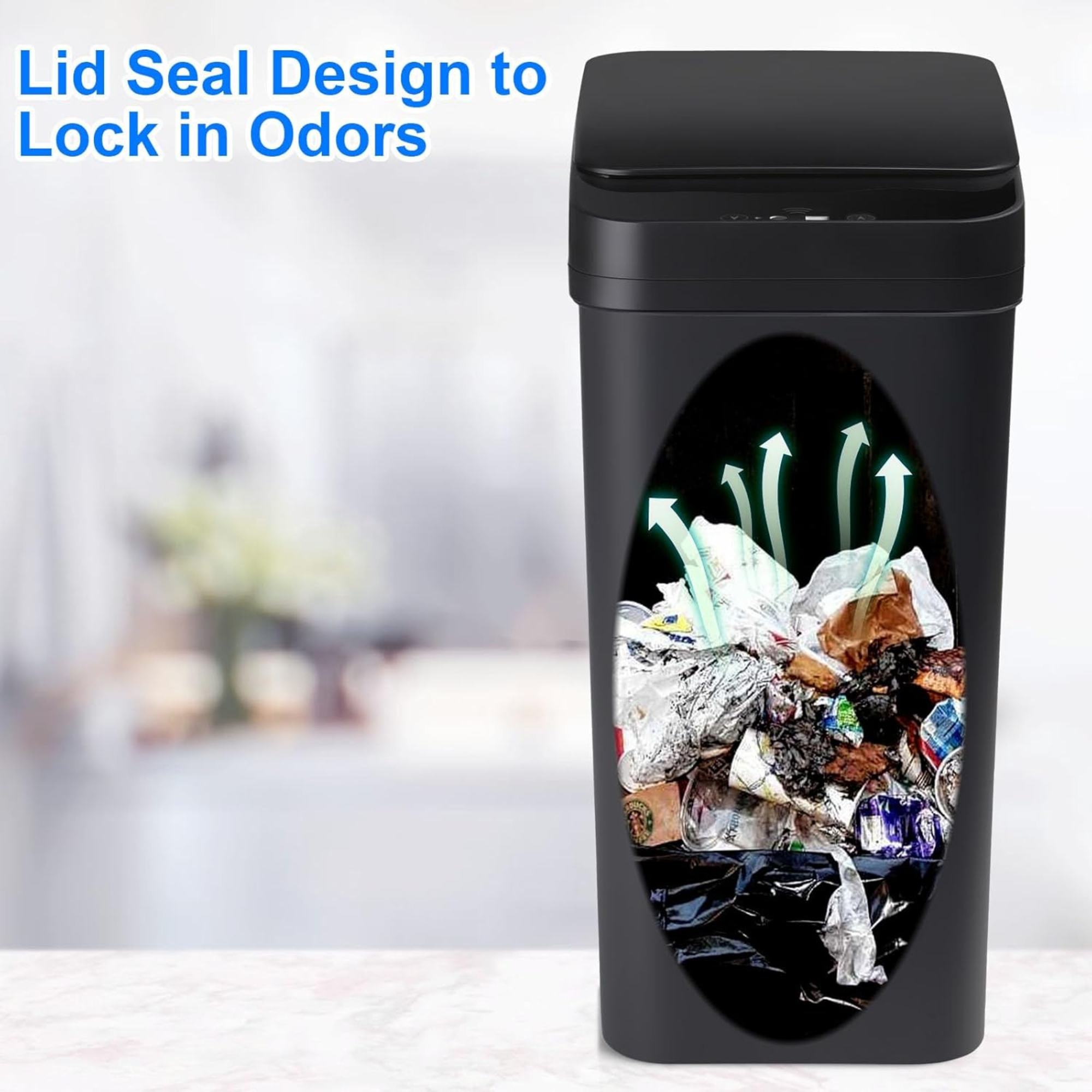 • 【Prevents Spreading of Odors】The smart trash can with lid and a one-piece barrel design, ensures a fully sealed enclosure that effectively isolates odors from garbage, maintaining a fresh and pleasant indoor environment
