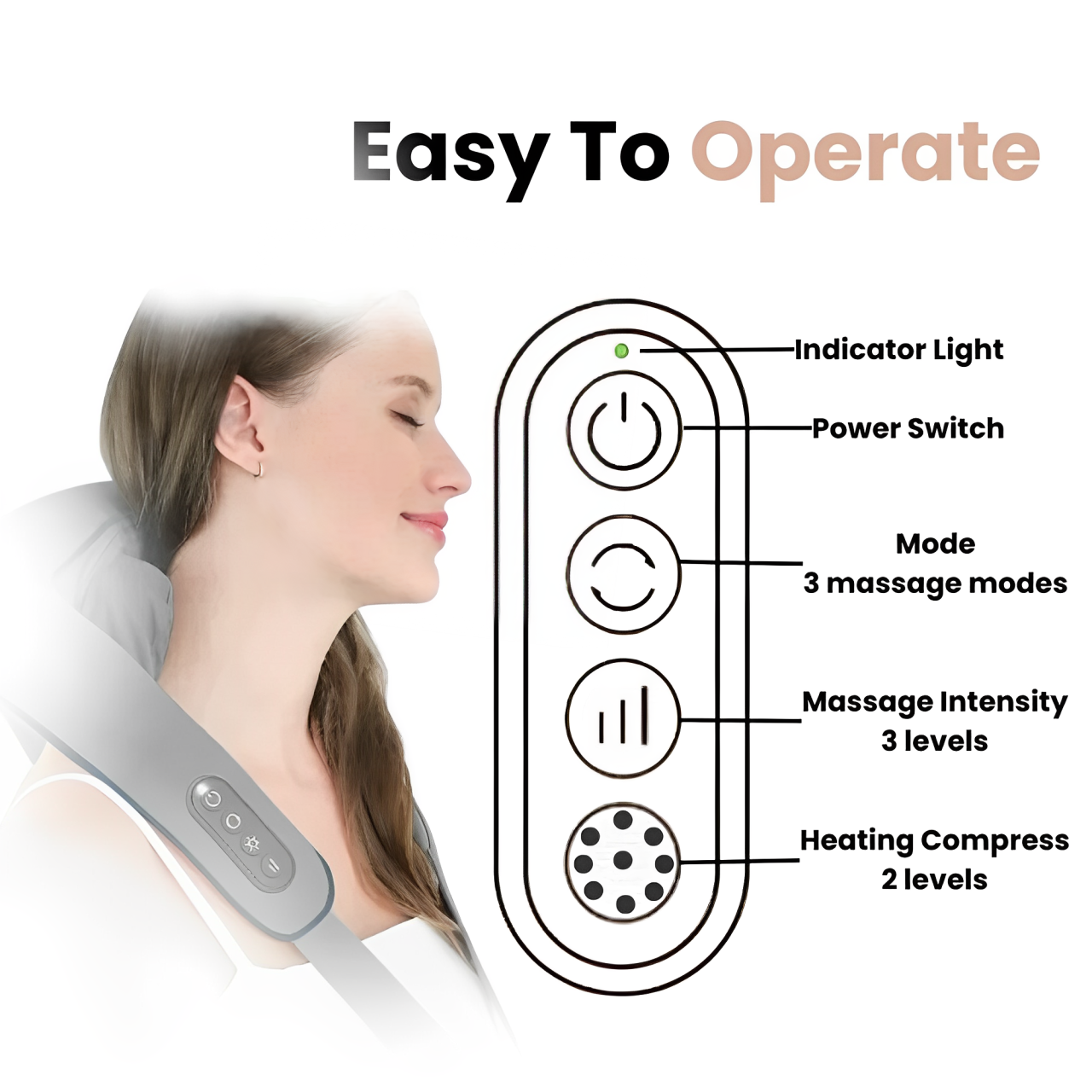 Its user-friendly design and adjustable straps ensure quick setup and hands-free operation, allowing you to enjoy targeted relief from neck pain and muscle tension with ease.