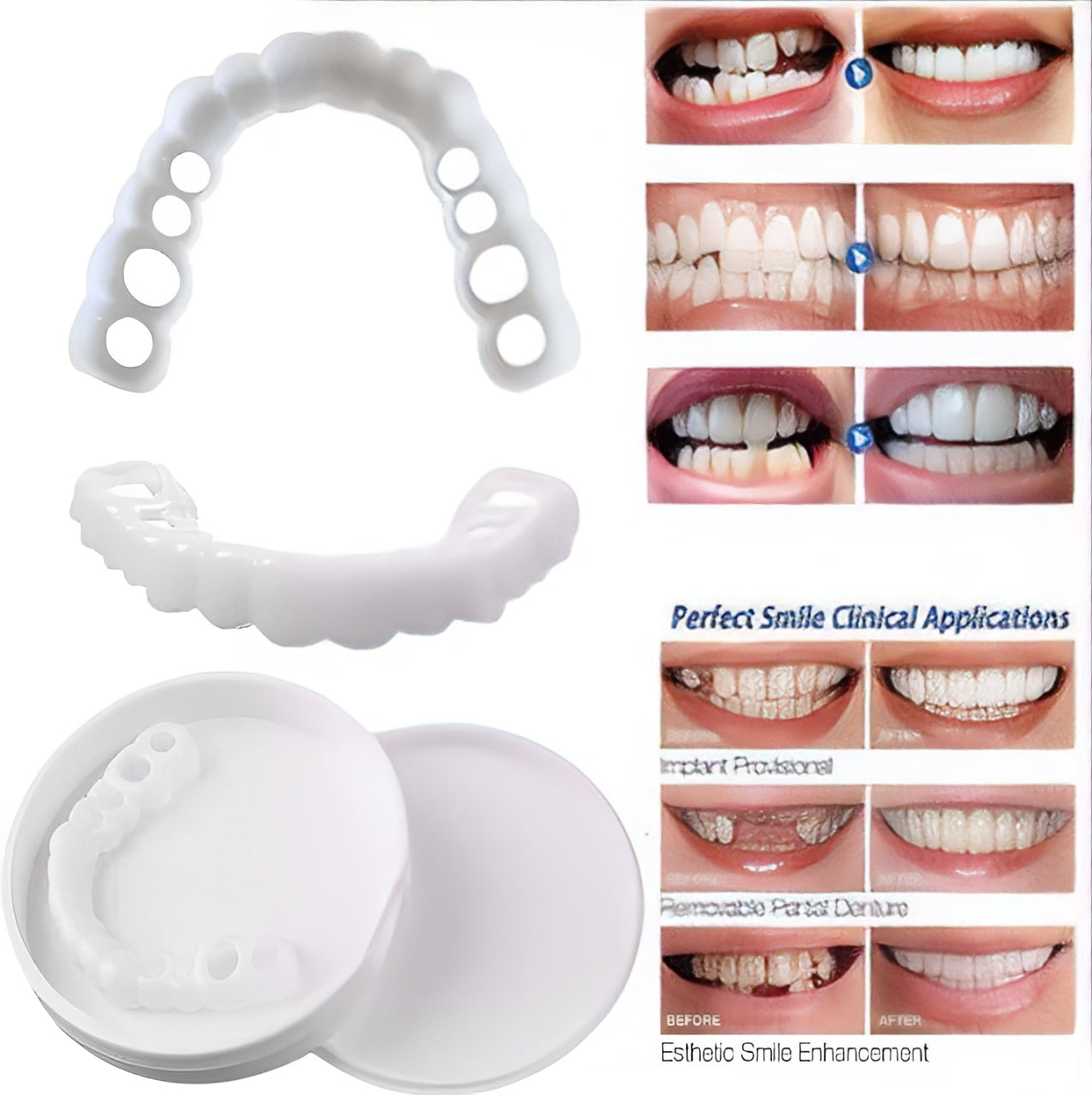Easy to use and made from micro-thin polypropylene, our dental veneers are super comfortable and allow for a custom fit to your mouth. You'll be able to eat, drink and smile without any problems. Plus, they're reusable and won't damage your teeth. Forget about expensive visits to the dentist and get the smile of your dreams today!