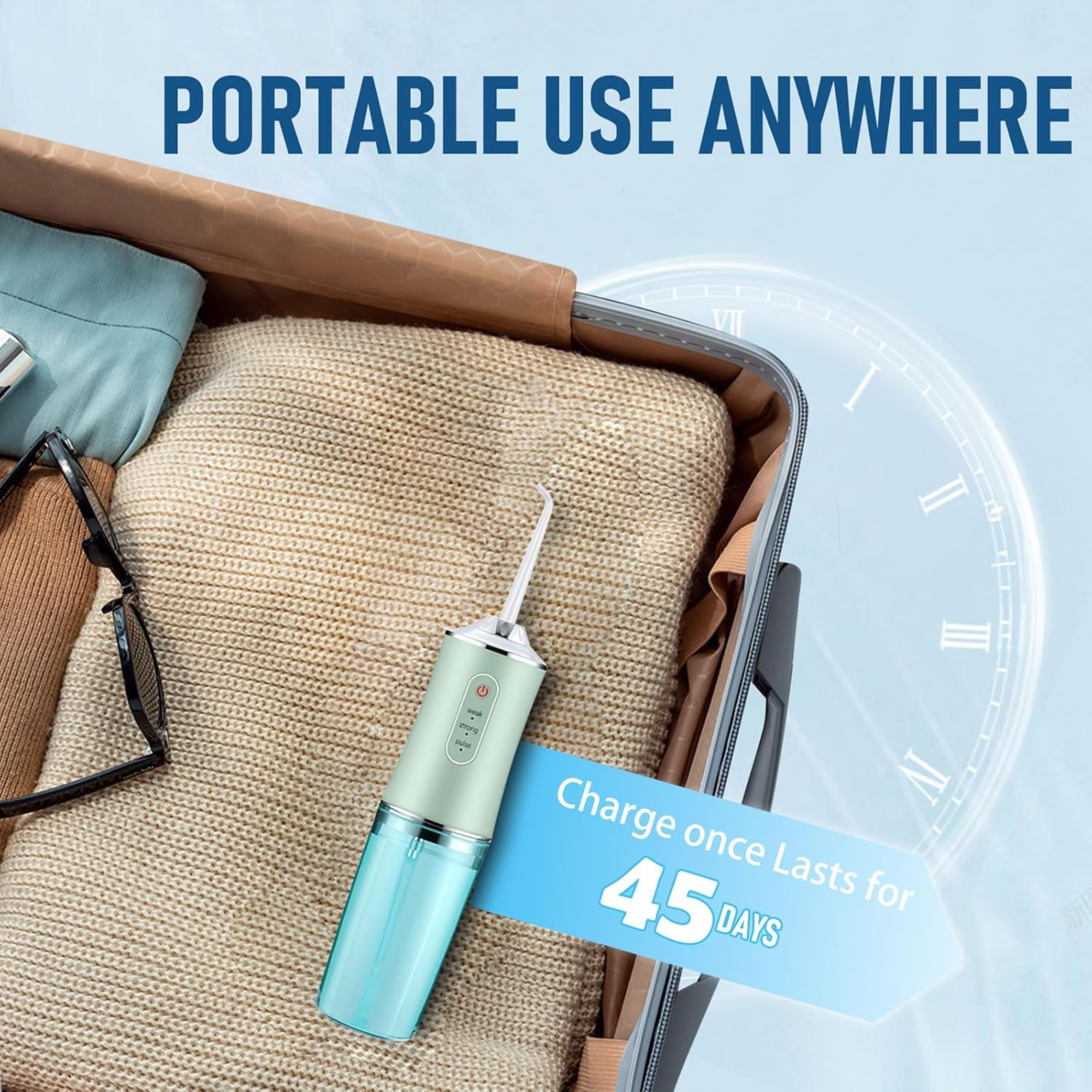 4 hours of full charge of this oral irrigator can last for about 60 days. No need for frequent charging. It comes with a USB cable (adapter not included), suitable for various charging devices, such as power supplies, computers, and laptops. The cordless water flosser is perfect for carrying around and traveling.